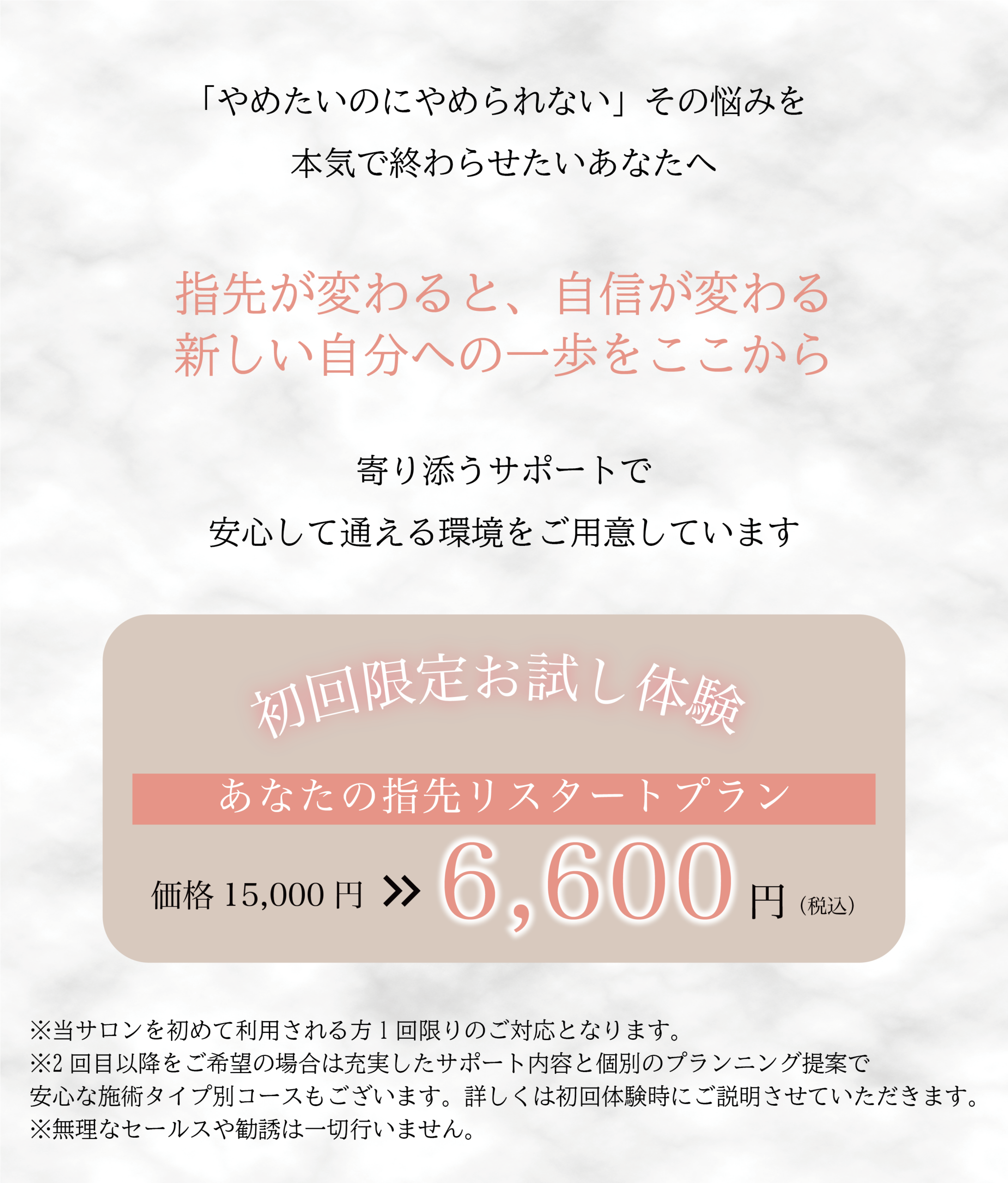 自爪の状態でのご来店をよろしくお願いいたします。